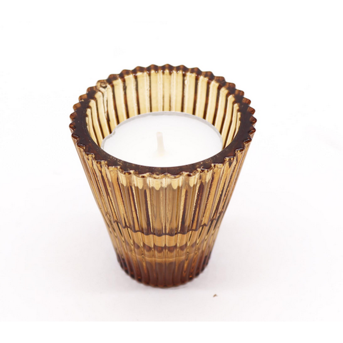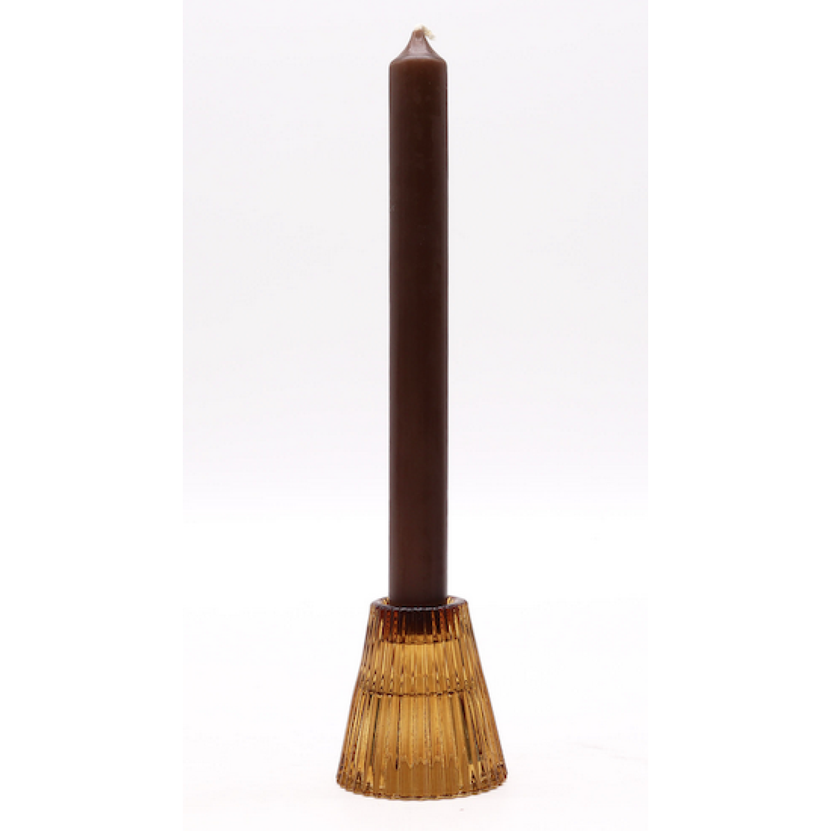 The unique grooved texture creates visual interest and enhances the candlelight, casting a soft, ambient glow that transforms any setting into an elegant and cosy environment. Whether used individually for intimate occasions or as part of a larger display, the Antique Amber holder is perfect for creating a welcoming atmosphere for dinners, celebrations, or special events.