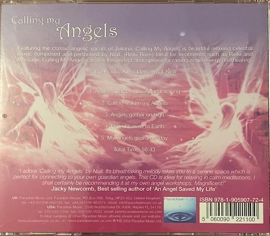Featuring the classic angelic vocals of Juliana, Calling My Angels is beautiful relaxing celestial music composed and performed by Niall. (Reiki River) Ideal for treatments such as Reiki and Massage, Calling My Angels creates the perfect atmosphere for raising angel energy and healing. Co-Produced by Llewellyn & Niall.